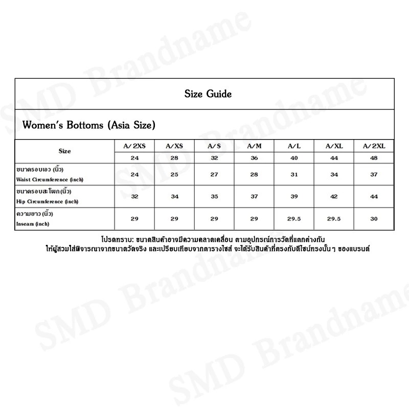 รอบเอว 30-33 นิ้ว สะโพก 33 นิ้ว ความยาวกางเกง 13 นิ้ว