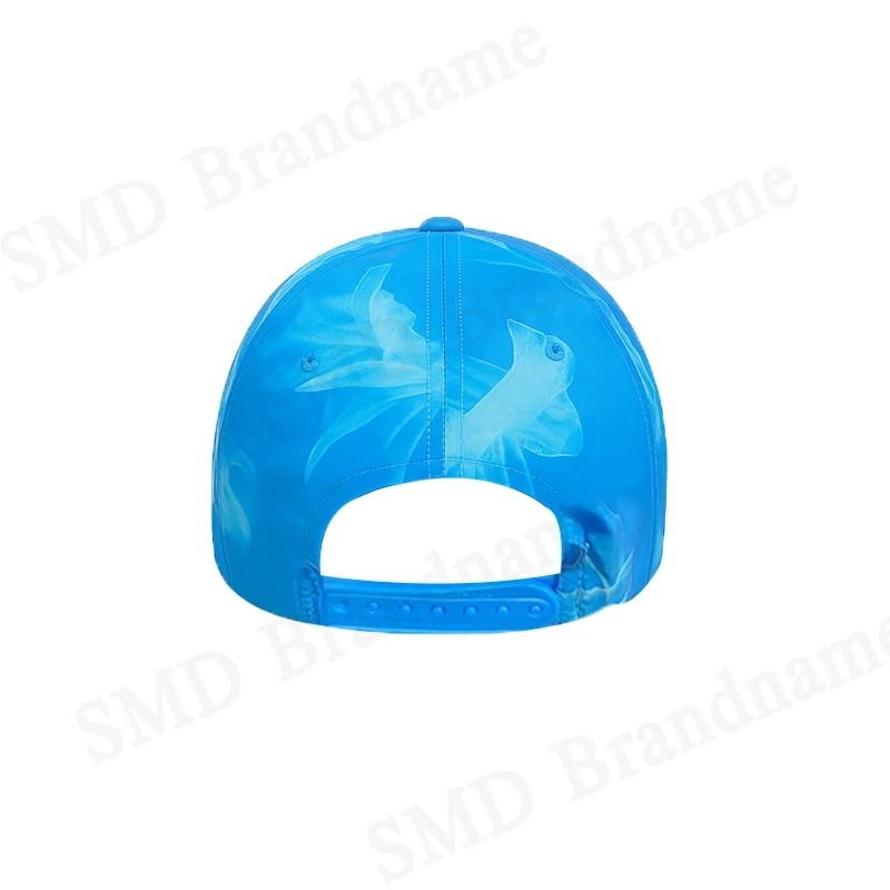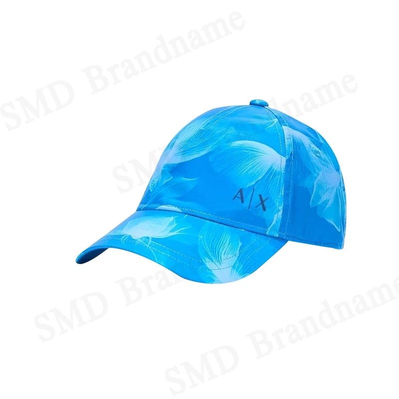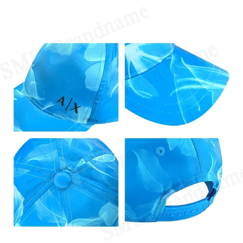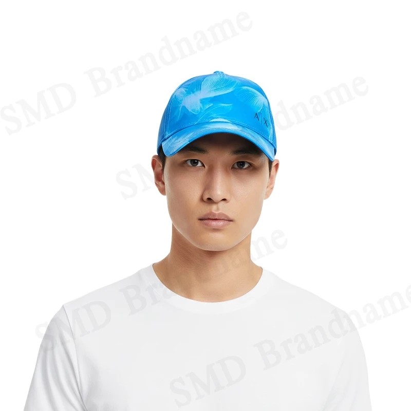 – หมวกทรงเบสบอลสีฟ้า ลายกราฟิกสีขาวตามดีไซน์แบรนด์