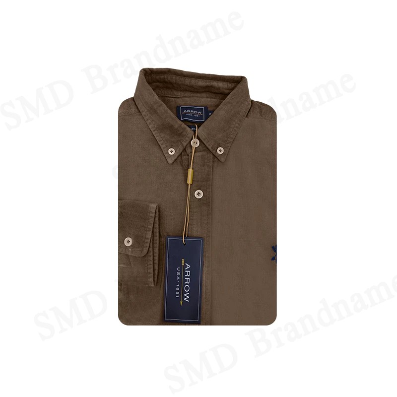 – เสื้อเชิ้ตแขนยาวคอปกสีน้ำตาล สำหรับผู้ชาย
