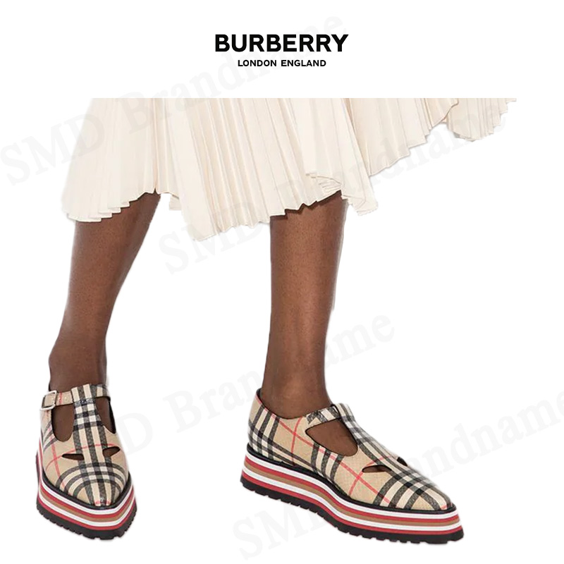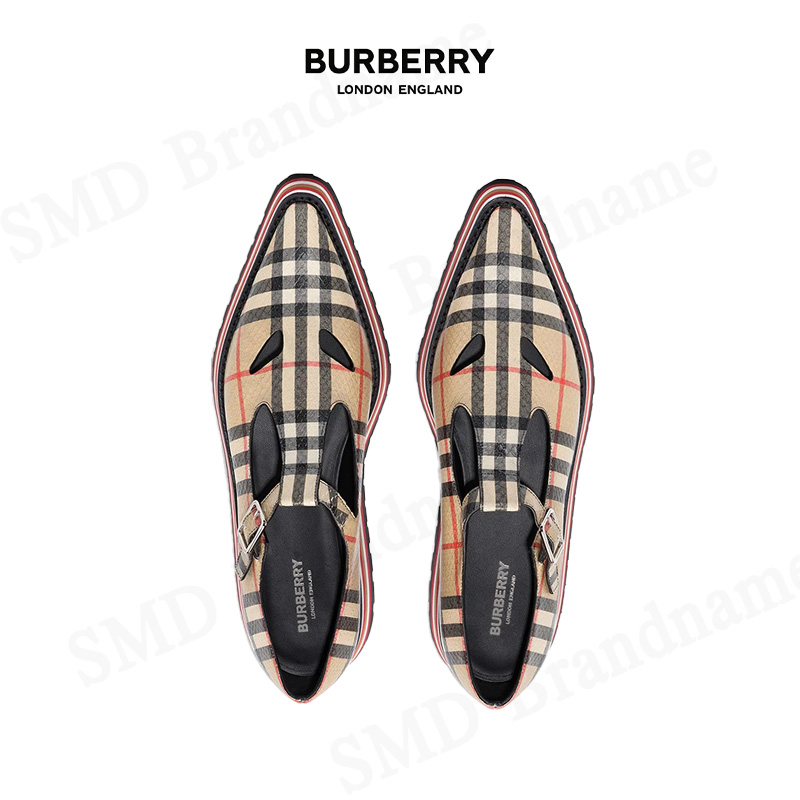 – ดีไซน์รองเท้าแบบหัวเรียวแหลม แต่งหนังลายซิกเนเจอร์เฉพาะแบรนด์ Burberry
