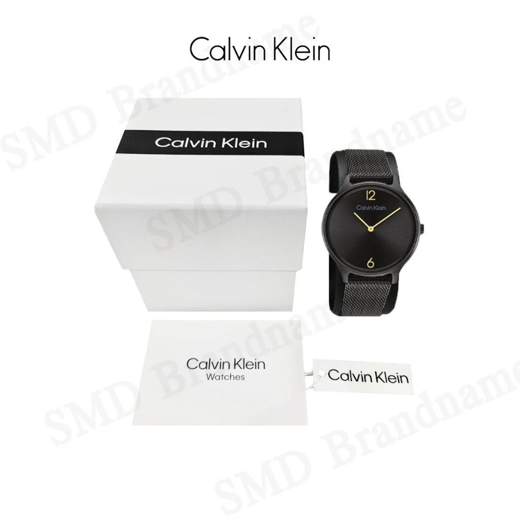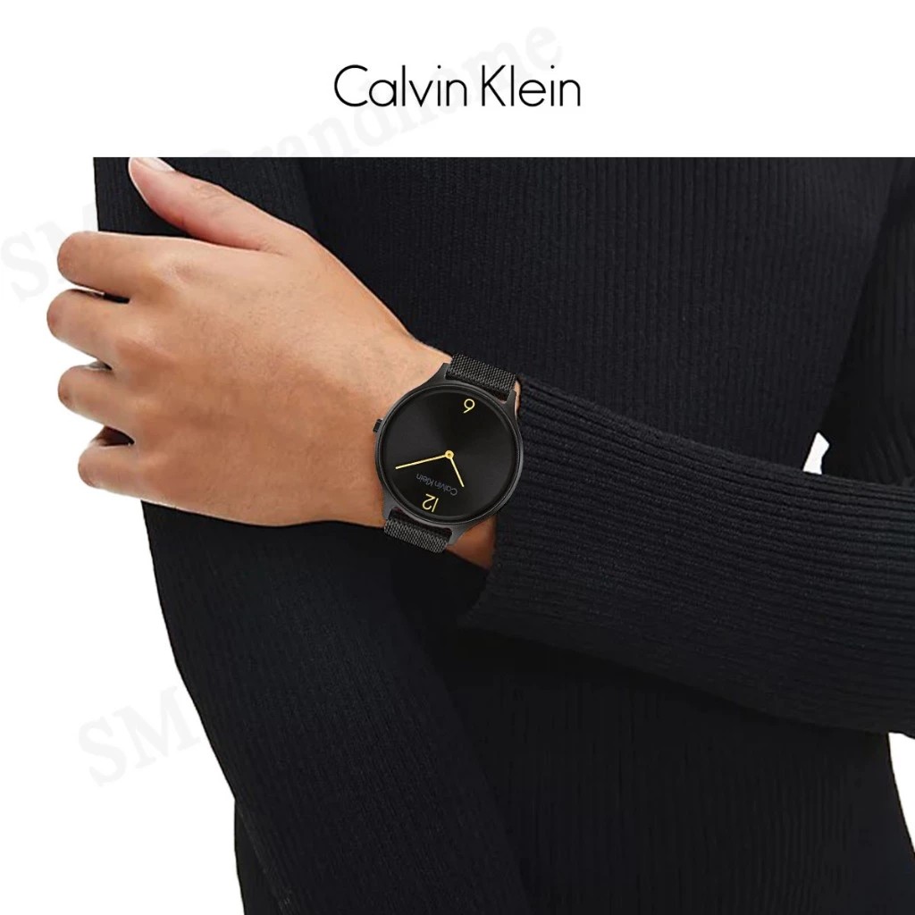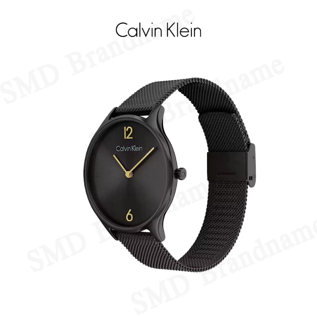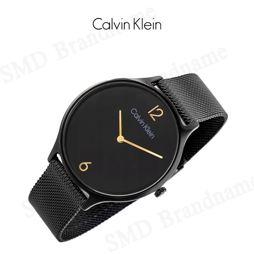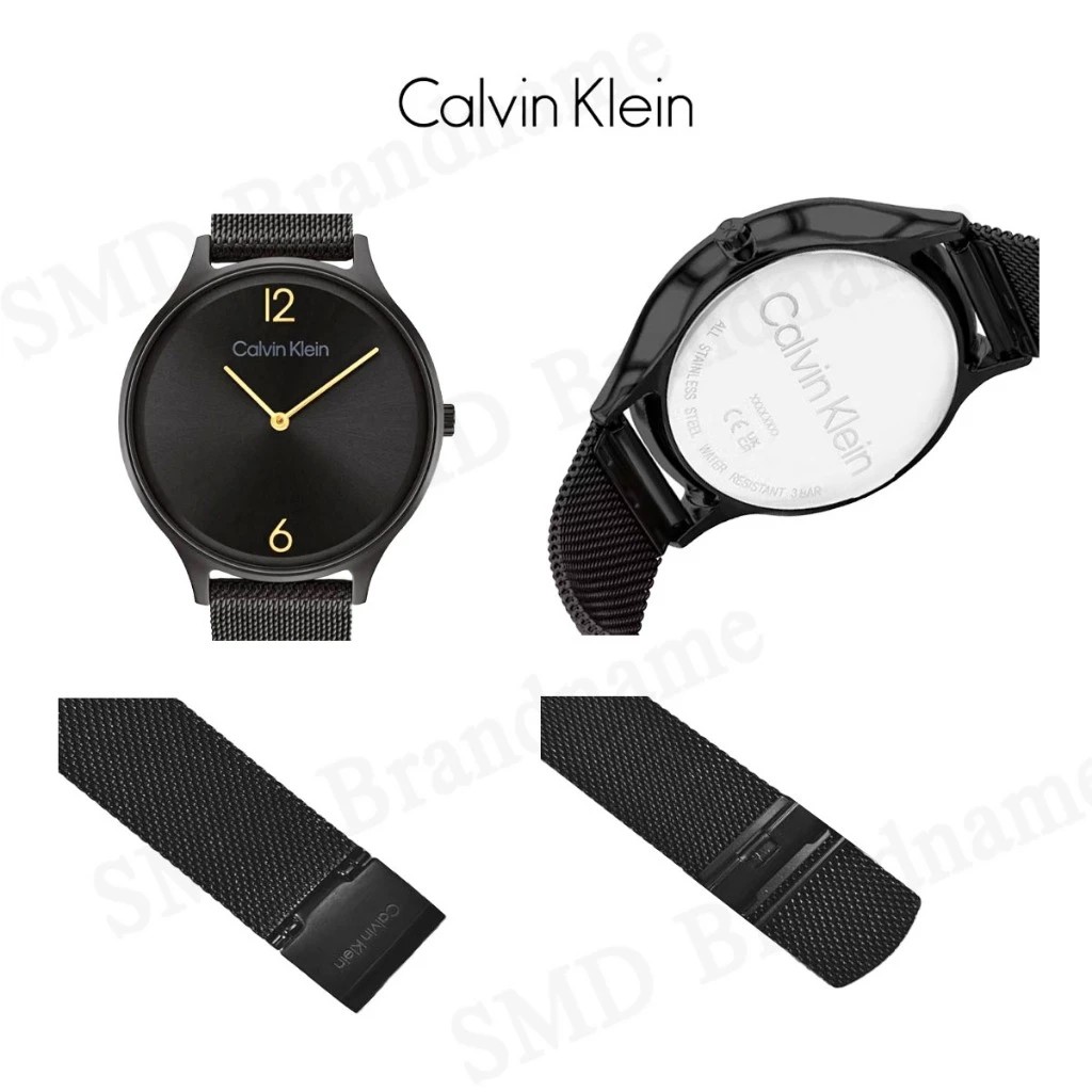– หน้าปัดสีดำ ตกแต่งด้วยชื่อแบรนด์ Calvin Klein สีเทา
