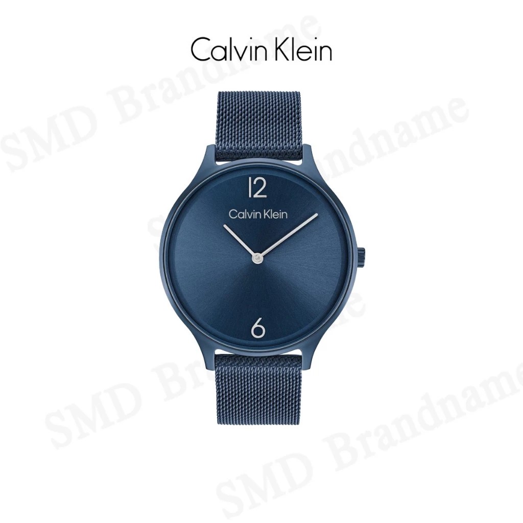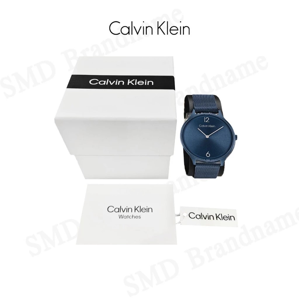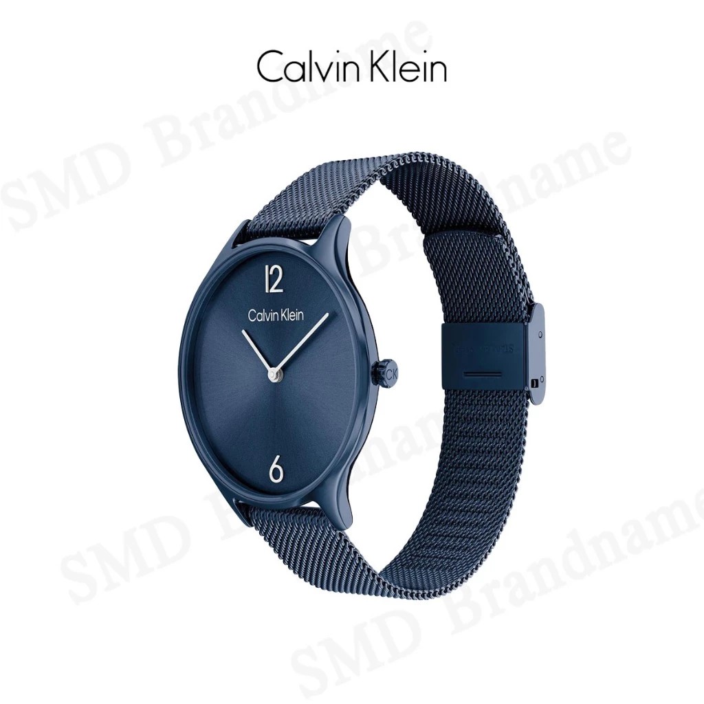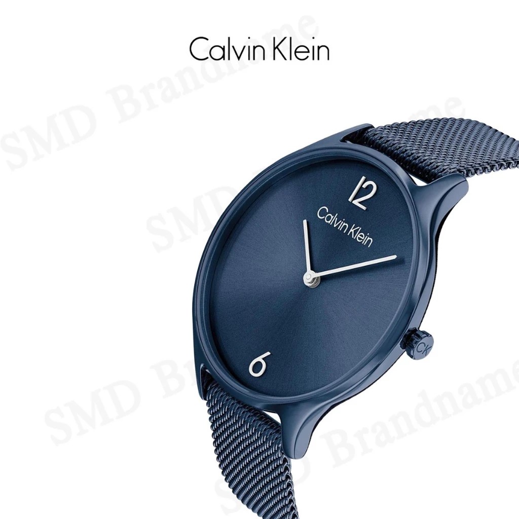 – หน้าปัดสีน้ำเงินเข้ม ตกแต่งด้วยชื่อแบรนด์ Calvin Klein สีเทา