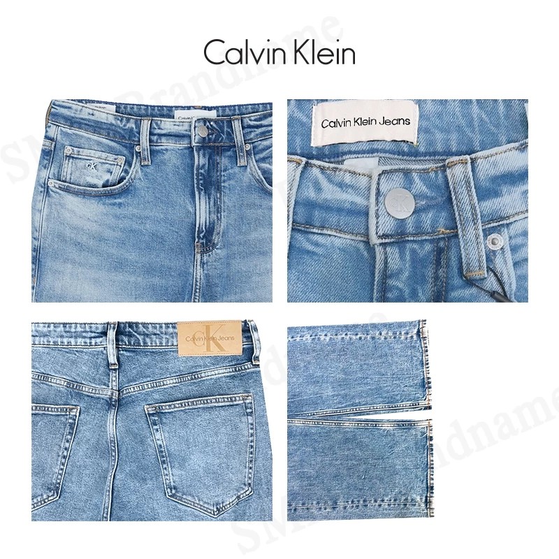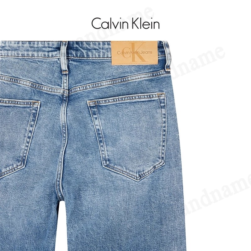 – ขอบเอวด้านขวาแต่งป้ายหนังสีน้ำตาล ปั๊มชื่อแบรนด์ CK Calvin Klein Jeans ตามดีไซน์แบรนด์