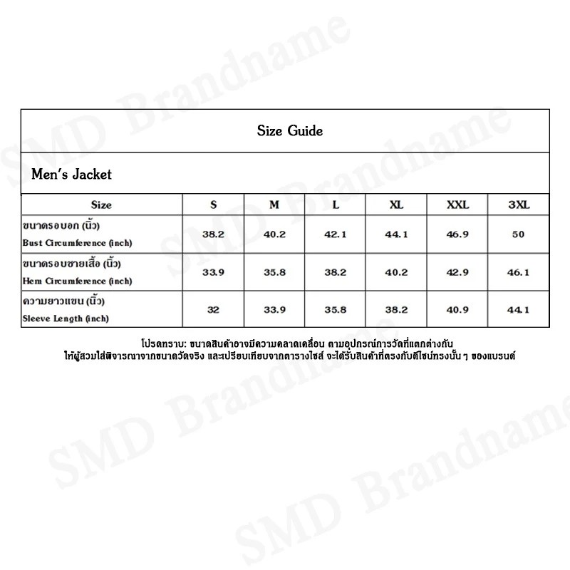รอบอก 44 นิ้ว ไหล่กว้าง 18.5 นิ้ว ความยาวเสื้อ 29.5 นิ้ว