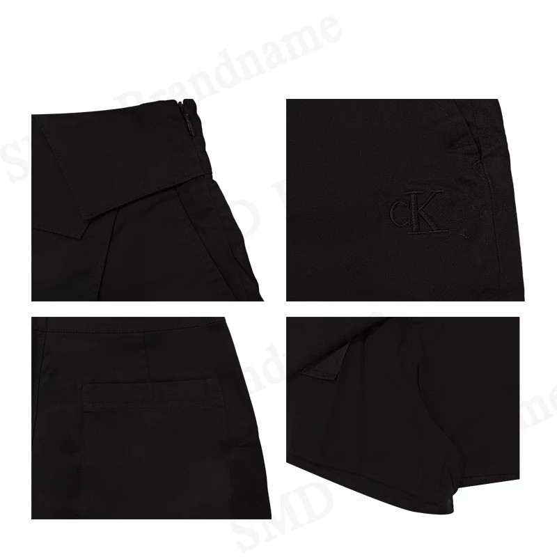 – สะโพกด้านซ้ายปักตัวอักษร CK สีดำ อันเป็นสัญลักษณ์ของแบรนด์