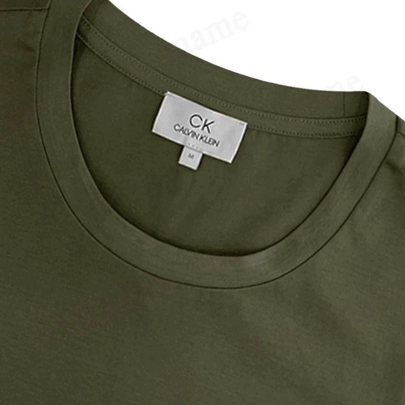 – คอเสื้อด้านหลังปั๊มโลโก้แบรนด์แบบนูน CK Calvin Klein สีเขียว อันเป็นสัญลักษณ์ของแบรนด์