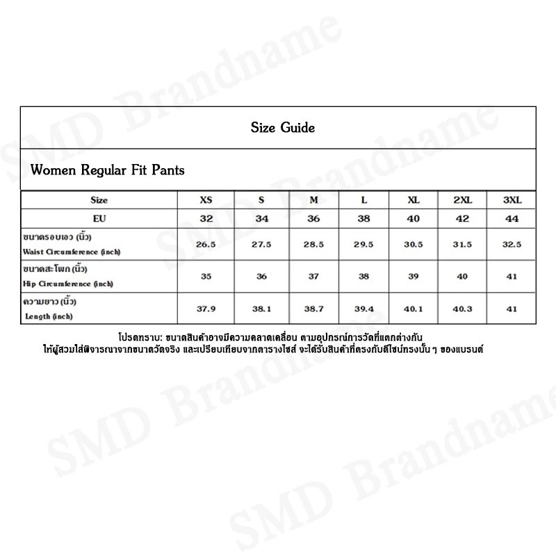 รอบเอว 31-33 นิ้ว รอบสะโพก 38 นิ้ว ความยาวขา 37.5 นิ้ว