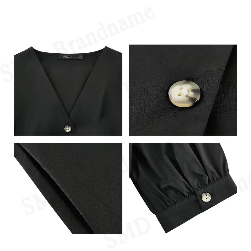 – ชุดเดรสคอวีเฉดสีดำ สำหรับผู้หญิง