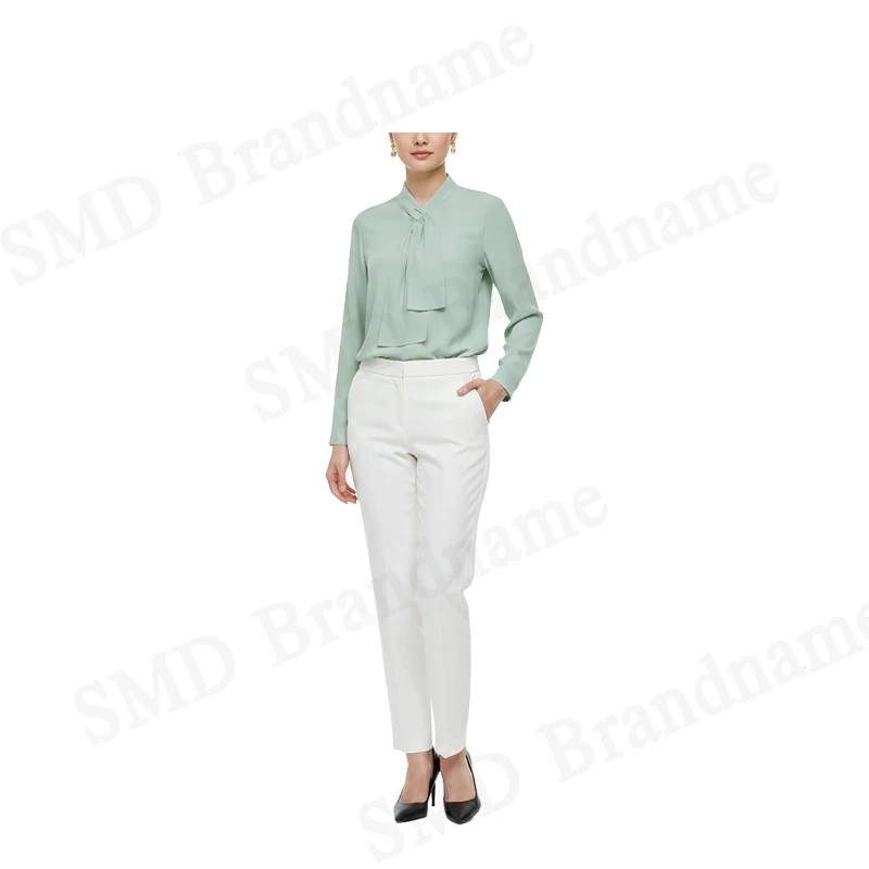 – เสื้อเบลาส์แขนยาวโทนสีเขียว ทรง Regular Fit สำหรับผู้หญิง