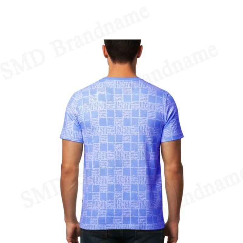– เสื้อยืดคอกลมแขนสั้นสีฟ้า สำหรับผู้ชาย