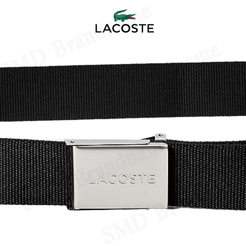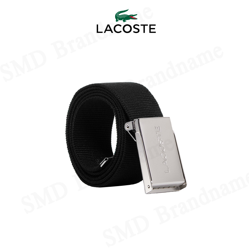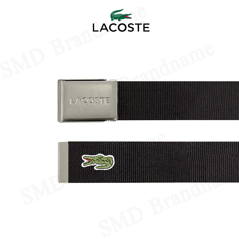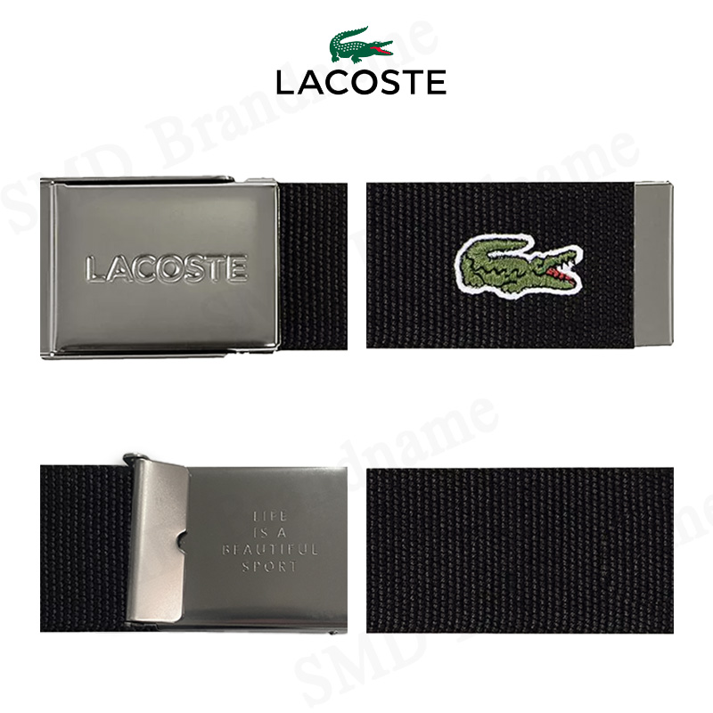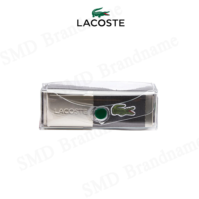 – หัวเข็มขัดเป็นแผ่นเหล็กเคลือบแกะสลักชื่อแบรนด์ Lacoste อะไหล่สีเงิน