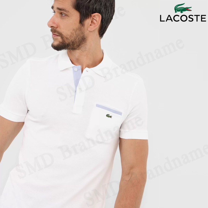 – บนกระเป๋าปักโลโก้เฉพาะแบรนด์ Lacoste
