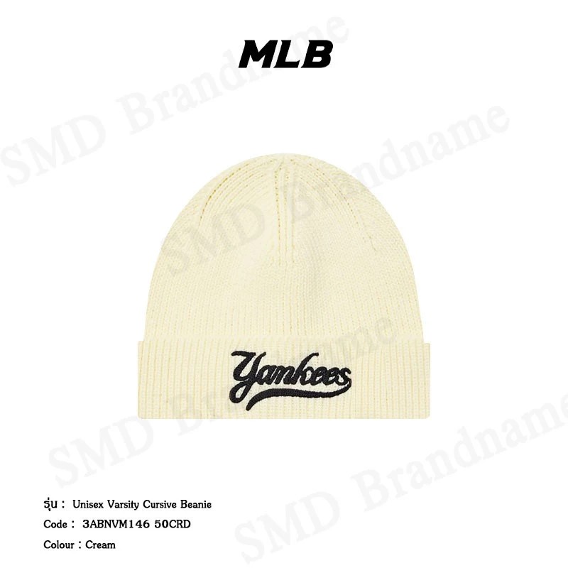 – หมวกด้านหลังปักโลโก้แบรนด์ MLB สีครีม อันเป็นสัญลักษณ์เฉพาะของแบรนด์