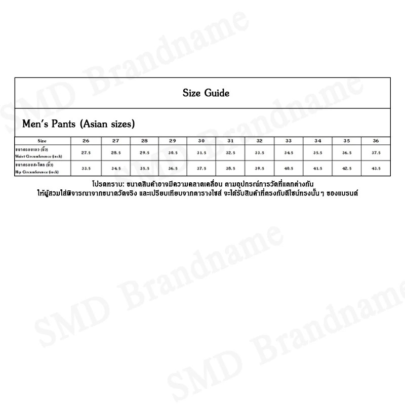 รอบเอว 36 นิ้ว รอบสะโพก 44 นิ้ว ความยาวขา 42.5 นิ้ว