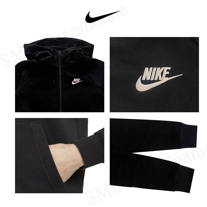 – ดีไซน์ด้านหน้าเสื้อตกแต่งโลโก้ Nike สีขาว อันเป็นสัญลักษณ์ของแบรนด์