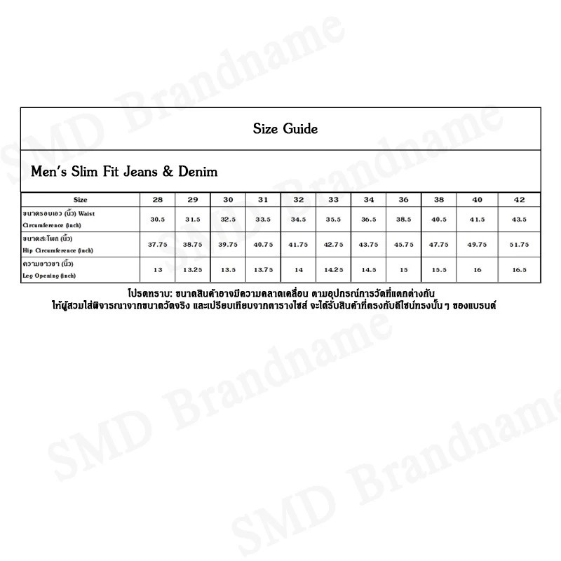 รอบเอว 38 นิ้ว รอบสะโพก 48 นิ้ว ความยาวขา 42 นิ้ว
