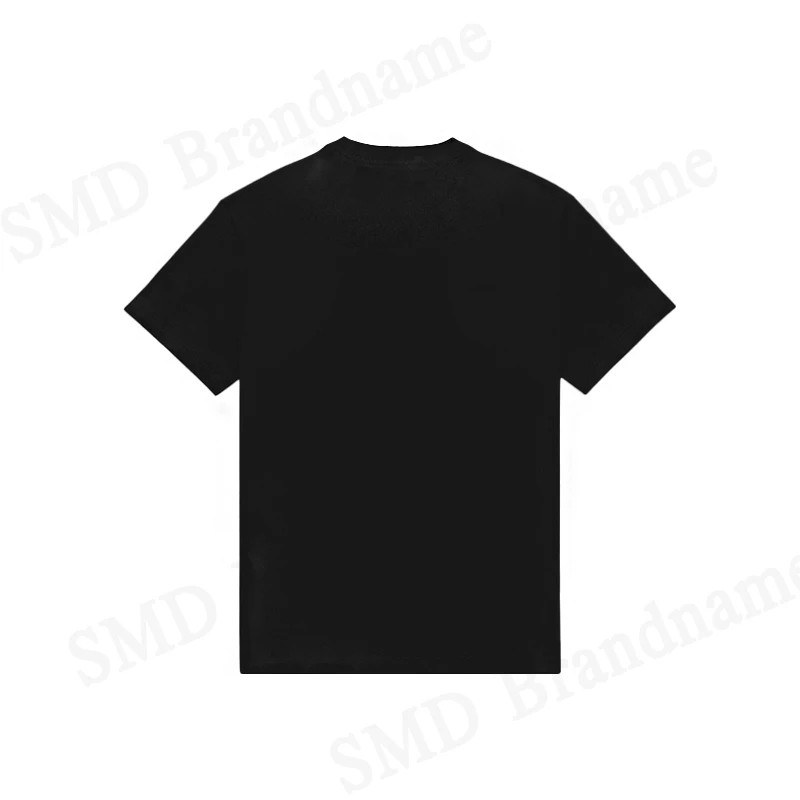– เสื้อยืดคอกลมสีดำ ดีไซน์คลาสสิค สกรีนชื่อแบรนด์กลางหน้าอก