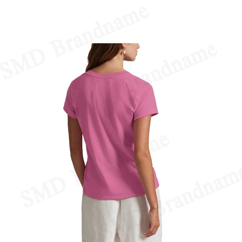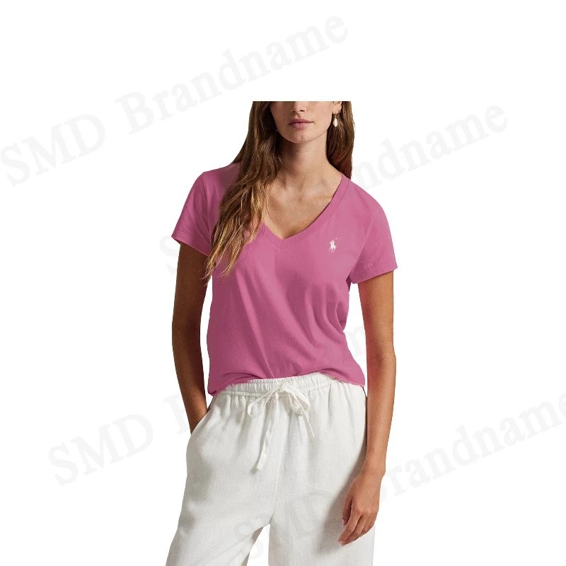 – เสื้อยืดคอวีแขนสั้น สีชมพู สำหรับผู้หญิง